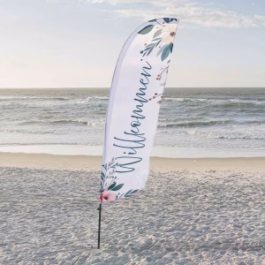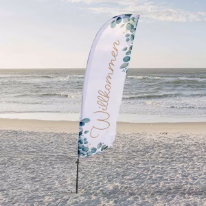 Beachflag „Willkommen“ im Boho-Blumenstil – die perfekte Fahne für dein Fest